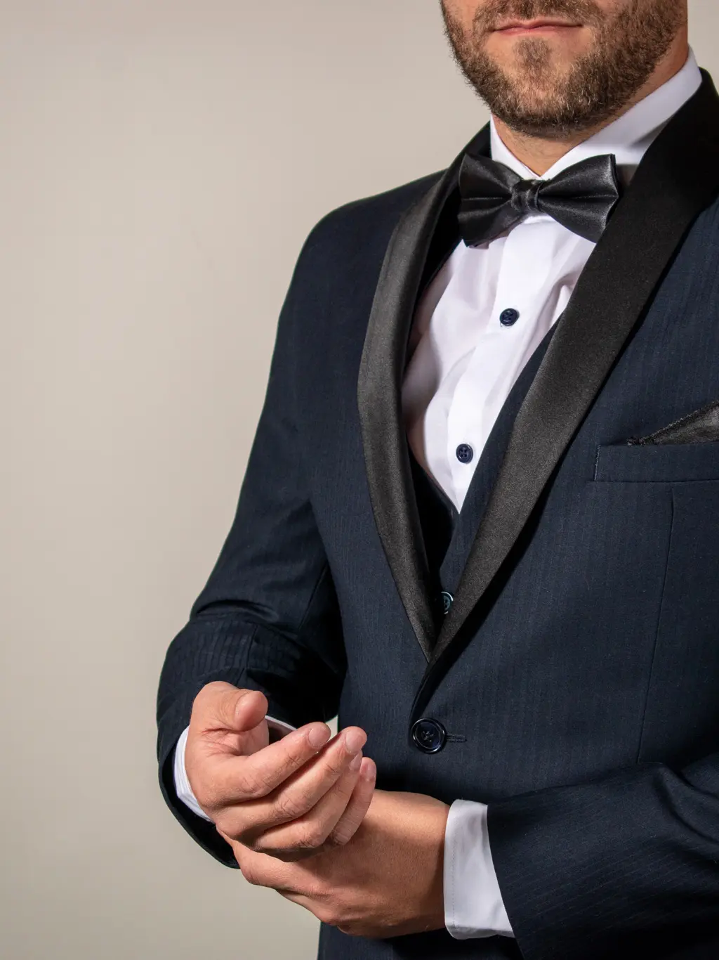 We collect 45+ measurements that are a mix of your physical dimensions, the desired dimensions of your custom suit, as well as a posture and fit analysis respectively.