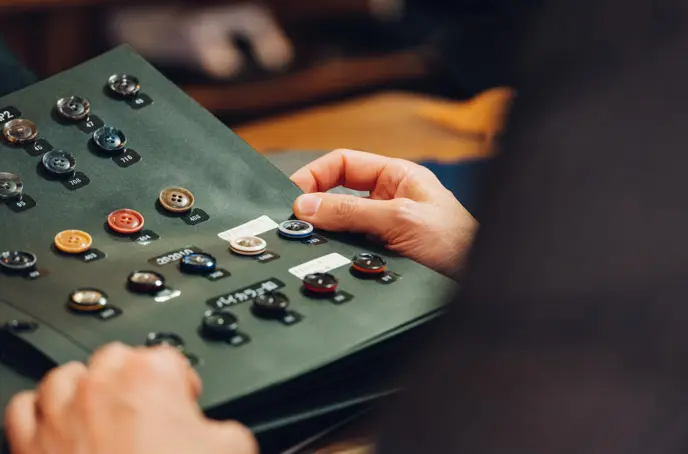 Choose from a rich selection of over 1,000 luxury materials, linings, and buttons.